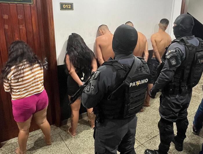 Quatro pessoas foram presas por envolvimento com o tráfico. Durante a condução dos suspeitos, uma mulher interferiu na ação policial, proferindo ofensas contra a equipe e incitando desordem. Ela também foi detida e, segundo a PM, resistiu à prisão, sendo necessário o uso de força moderada para contê-la.