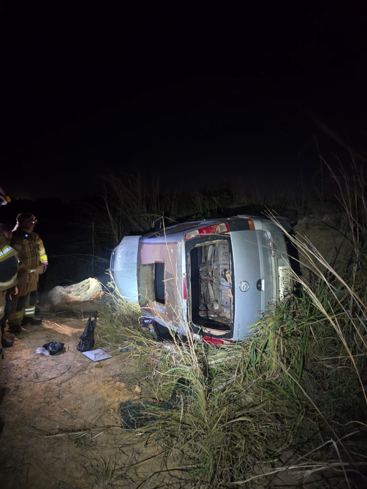 Durante o acompanhamento, o motorista perdeu o controle da direção ao entrar em um trecho de terra às margens da rodovia, fazendo com que o carro descesse um barranco de cerca de três metros e capotasse.