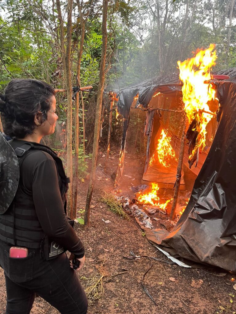 Além dos pés de maconha, foram destruídos casebres de madeiras com cobertura de lona plástica construídos no interior da reserva. As estruturas serviam para apoio logístico dos criminosos.