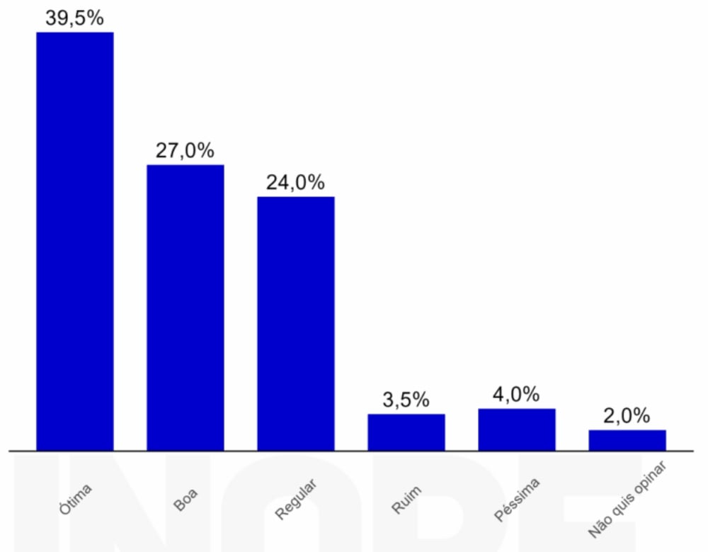 Por outro lado, 24% a avaliam como “regular”, 4%, como “péssima”, e 3,5% como “ruim”, enquanto 2% não opinaram.