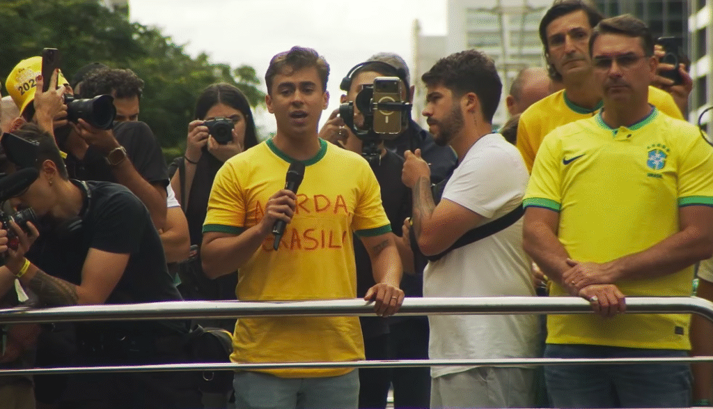 Em ato na Paulista, Nikolas diz que destino final de Moraes é a “cadeia”
